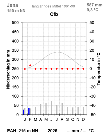 - grau: Vergleichswerte Klimastation Sternwarte (Jena, Schillergäßchen) 1961-90